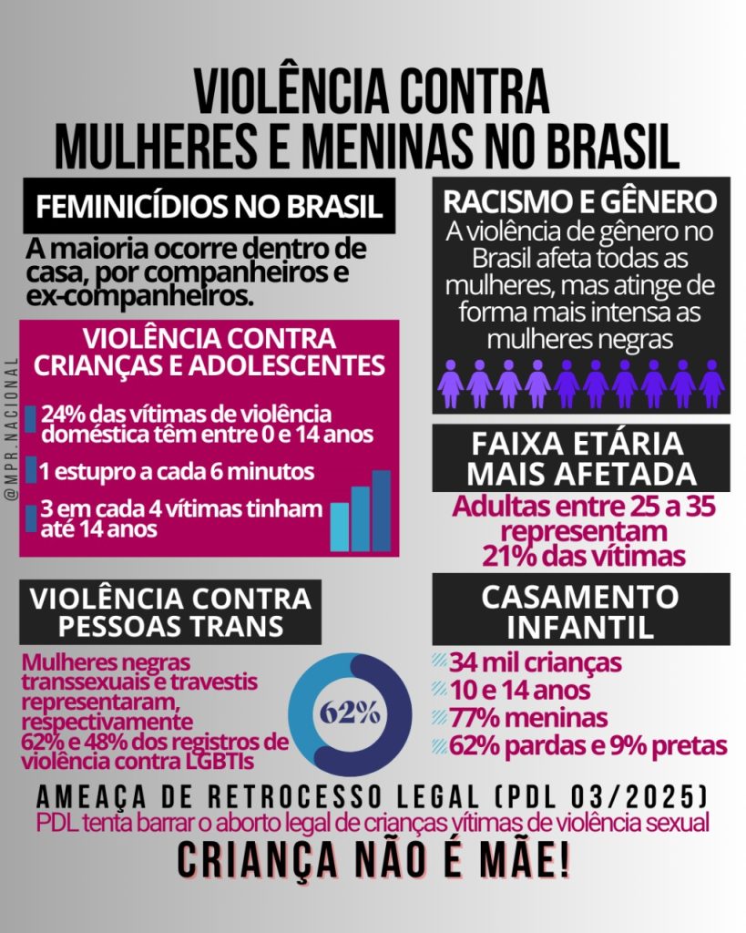 No primeiro semestre de 2025, 718 mulheres foram vítimas de feminicídio, e houve 187 estupros por dia, em média, conforme o Mapa Nacional da Violência de Gênero.